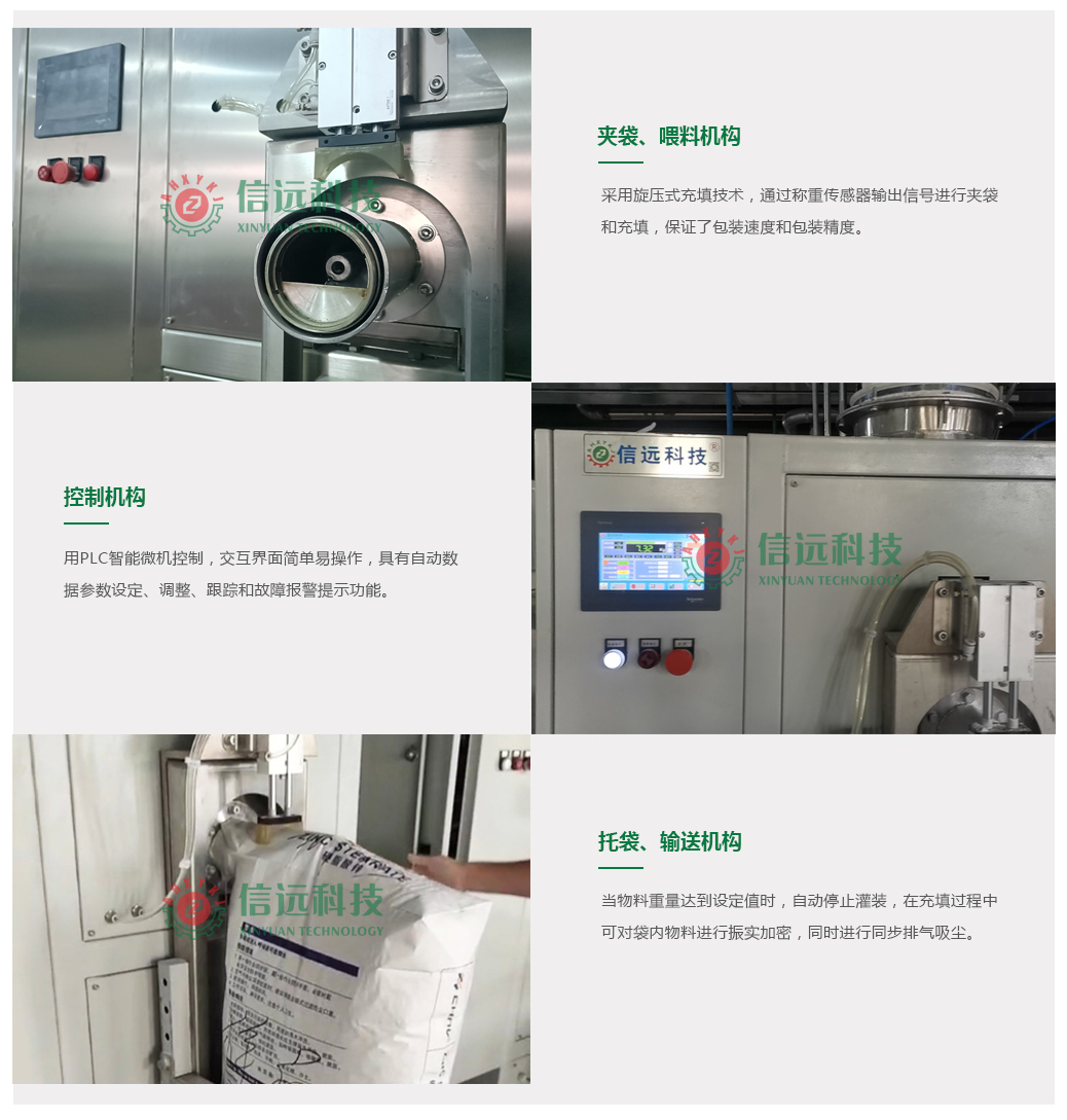 振動排氣機構(gòu)及氣流輔助輸送單元可對袋內(nèi)物料進行振實加密
