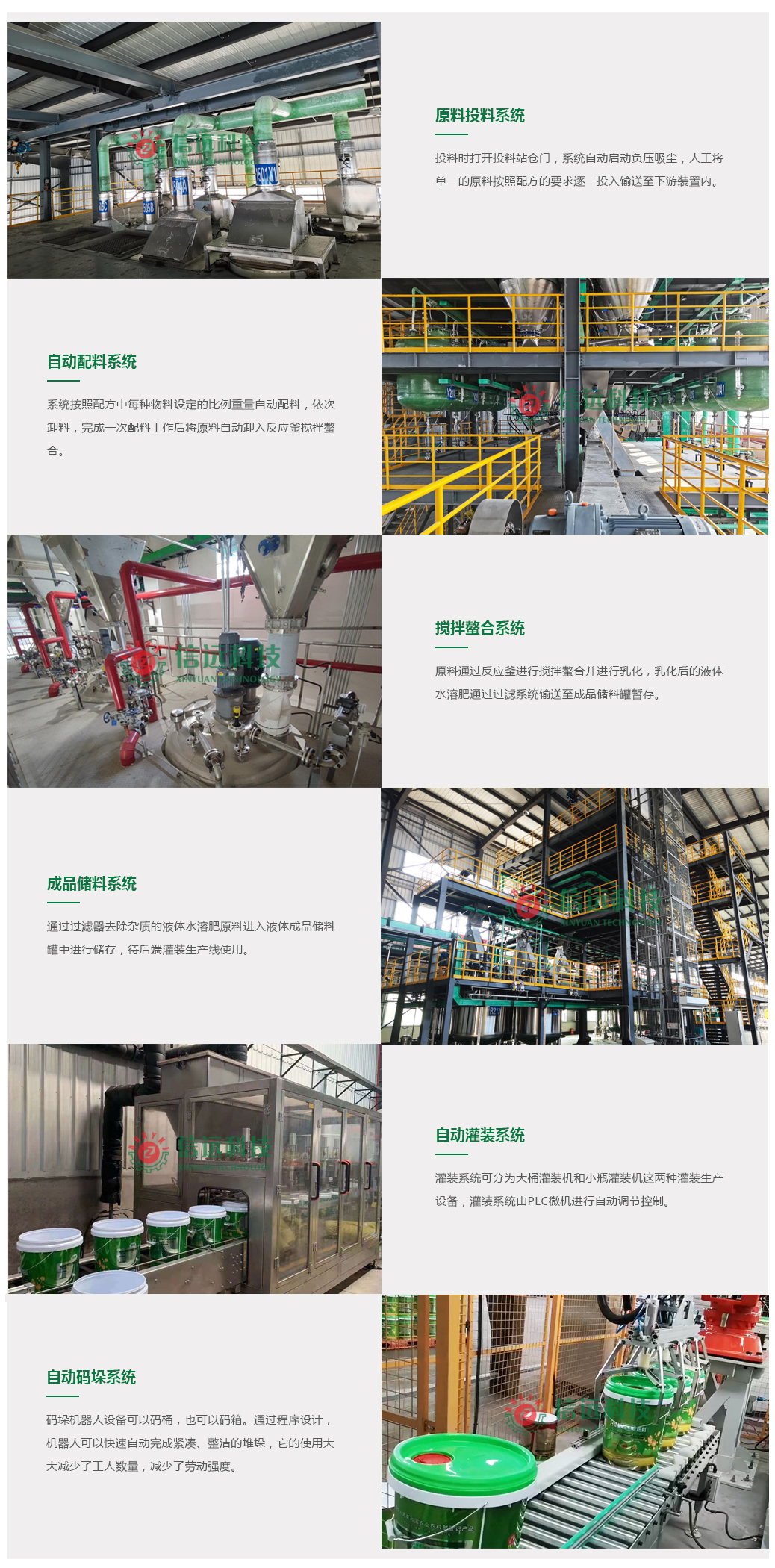 生產(chǎn)有機(jī)肥、大量元素、氨基酸、腐植酸等多種類型的液體肥產(chǎn)品