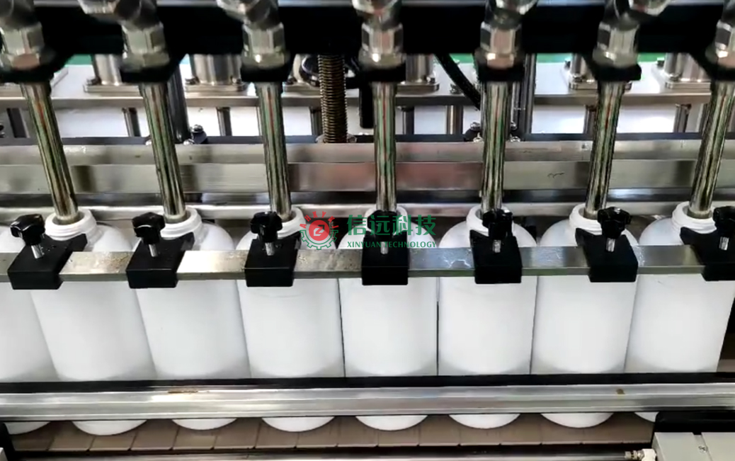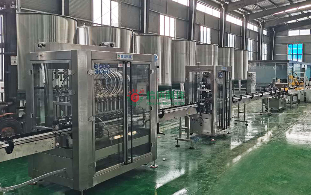 安徽信遠(yuǎn)包裝科技有限公司設(shè)計(jì)制造的瓶裝液體肥灌裝碼垛生產(chǎn)線設(shè)備,是一套全自動(dòng)化的灌裝碼垛系統(tǒng),由灌裝機(jī)、上蓋機(jī)、旋蓋機(jī)、鋁箔封口機(jī)、噴碼機(jī)、貼標(biāo)機(jī),封箱機(jī)、捆扎機(jī)和碼垛機(jī)器人等裝置組成,可以自動(dòng)完成從裸瓶到整箱堆垛的流水線生產(chǎn)。灌裝機(jī)有不同的機(jī)型配置,灌裝頭數(shù)量也不同(有四頭、六頭、八頭、十頭等),可以灌裝100-1000ml容量的立式瓶液體肥,肥料生產(chǎn)廠家可以根據(jù)自己的產(chǎn)品產(chǎn)能需求和采購預(yù)算進(jìn)行選配。